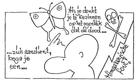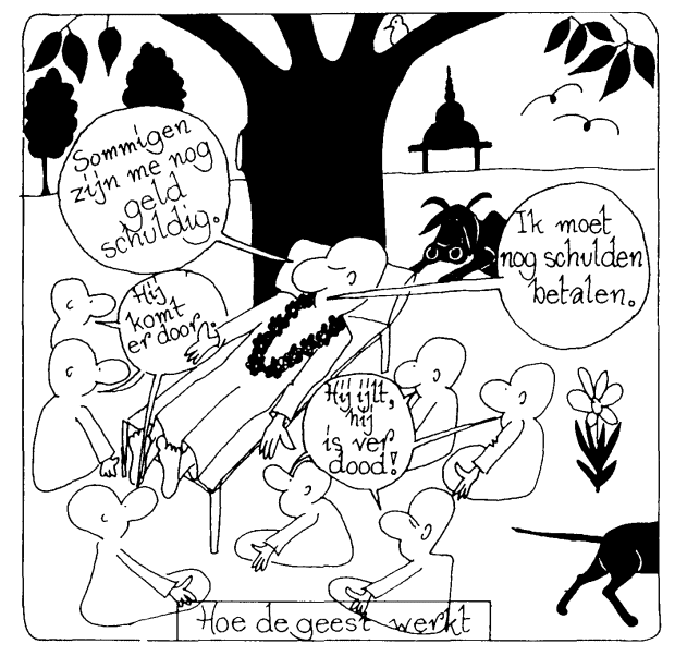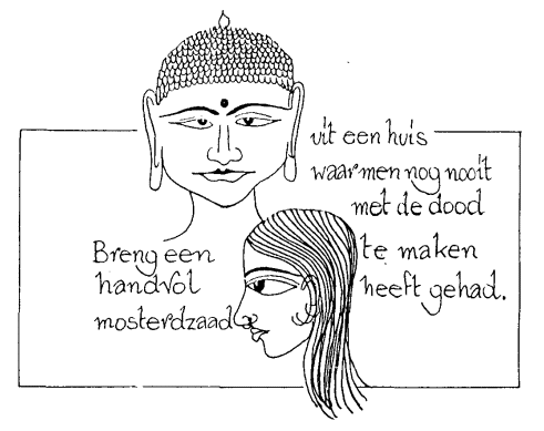 In het begin van dit jaar was er op tv sprake van het voetbaldrama op de Heizel. Ik hoorde de woorden "twee jaar geleden" en dacht: "Is dit al zó lang geleden? Het vliegt voorbij !" "Het leven is een kermis van twee dagen", zei Goeroedev. Dit leven is inderdaad vol van lijden. Als je de krant openslaat of het journaal bekijkt komt het in al zijn vormen op je af. Niemand blijft ervan gespaard, ieder huisje heeft zijn kruisje. Lang vóór Christus werd geboren wandelde over deze aarde een grote verlichte wijze, Boeddha. Een vrouw wier enig kind gestorven was, smeekte hem een mirakel te doen en haar kind weer levend te maken. De Boeddha stelde evenwel een voorwaarde. Hij vroeg haar een handvol mosterdzaad te brengen uit een huis waar men nog nooit met de dood te maken had gehad. Zij ging van huis tot huis, maar overal was er al wel iemand gestorven in de familie. Zij begreep wat de Boeddha haar wilde duidelijk maken.