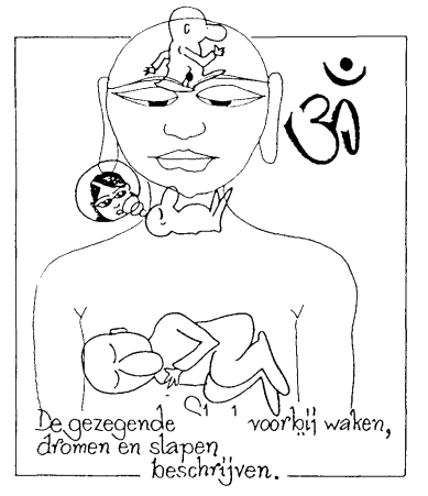 Toerieyaatieta betekent letterlijk: voorbij (Atieta) de vierde (Toerieya). Je gaat onophoudelijk door drie bewustzijnstoestanden: waken, dromen en slapen. Aan de basis van die drie ligt één en hetzelfde bewustzijn. Dit is Toerieya of de vierde, die voorbij alle andere bewustzijnstoestanden ligt. Woorden kunnen dit niet beschrijven. Je moet het ervaren. Geen enkele hoeveelheid woorden kan aan een blinde de schoonheid van een zonsondergang beschrijven. Er was een oud echtpaar. De man kon bijna niet meer lopen. De vrouw was blind. De kreupele man steunde op zijn blinde vrouw en hij wees haar de weg. Zij was de benen, hij de ogen. Op dezelfde manier kun je gedeeltelijk de ogen van de blinde zijn en hem enthousiaste beschrijvingen geven van wat je ziet, zoals een verlichte Goeroe aan zijn discipel. De enige afdoende oplossing is evenwel dat de blinde van zijn blindheid wordt genezen en dat de discipel zich van zijn onwetendheid ontdoet.