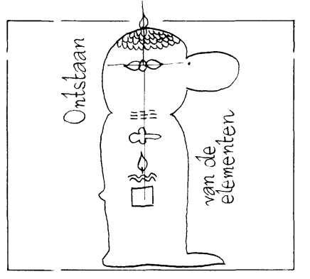 Het eerste wat zich dan veruitwendigt is de geest (Manas) met al zijn sluimerende begeerten (Sankalpa-Vikalpa). Deze begeerten zijn de zucht naar kennis via vijf zintuigen. Het eerste zintuig dat zich manifesteert is het gehoor, samen met het element "ether". Het tweede zintuig dat wordt ontwikkeld is de tastzin; "ether" verdicht zich tot "lucht". Het derde zintuig dat ontstaat is het gezicht; het element "lucht" verdicht zich tot "vuur". Het vierde en het vijfde zintuig zijn de smaak en de reuk; ze ontstaan samen met de elementen "water" en "aarde". De materie bestaat in deze vijf vormen: in een etherische vorm, gasvormig, als hitte of warmte, in vloeibare vorm en vast. In de ongemanifesteerde oermaterie is er geen polariteit. De evolutie begint als de polariteit te voorschijn komt. Er ontstaan twee polen: positief en negatief of mannelijk en vrouwelijk of potentieel en kinetisch. De positieve pool bevindt zich bij de mens in de top van de schedel. Hij wordt positief, mannelijk of zon genoemd, omdat hij, zoals de zon, niets doet, maar door zijn aanwezigheid alles mogelijk maakt. Als energie actief wordt, noemt men ze negatief, vrouwelijk of maan. Als de polen zich van elkaar verwijderen ontstaan eerst de Aagnyaa Chakra en de geest (Manas). Als je twee lijnen trekt, de eerste door de top van de schedel recht naar beneden en de tweede tussen de ogen, horizontaal naar achteren, dan ligt de Aagnyaa Chakra op het snijpunt van beide lijnen, in het achterhoofd.